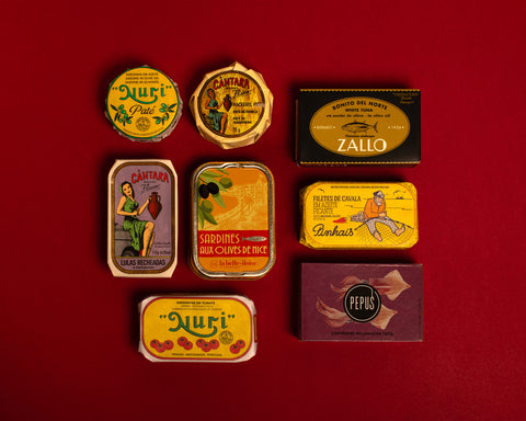 The tins are presented in an illustrated gift box and there is an option to add a personalised message. Among the tinned fish gift boxes are Sardinero, a tinned fish hamper filled with sardines in an array of different olive oils and sauces from artisan canneries like Nuri, Ramon Pena and Berthe, Cantabrica is a tinned fish selection of Cantabrian anchovies from Spanish canneries Angelachu, Olasagasti and Zallo. Mercadito is a tinned fish basket filled with Portuguese fish pâté, and others like La Fabrica and Chamberi include octopus in olive oil as well as Zallo tuna, Nuri sardines and more.