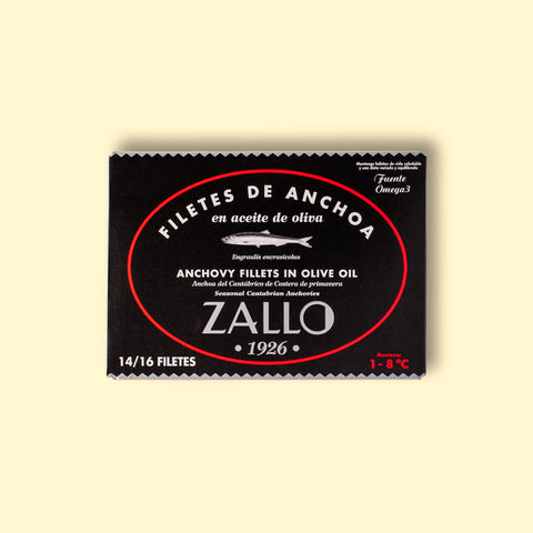 Premium anchovies tinned in the Basque Country. Zallo fishes its anchovies between March and June in the Cantabrian Sea when they’re at their peak, and prepares them using artisanal methods. Meaty and flavoursome, these are Zallo’s best fillets. You can choose a tin with 20 fillets, or one containing 14 larger fillets. Cholesterol-busting and heart-healthy, anchovies are great straight from the tin, on buttered toast or added to sauces to deepen and enhance flavours.